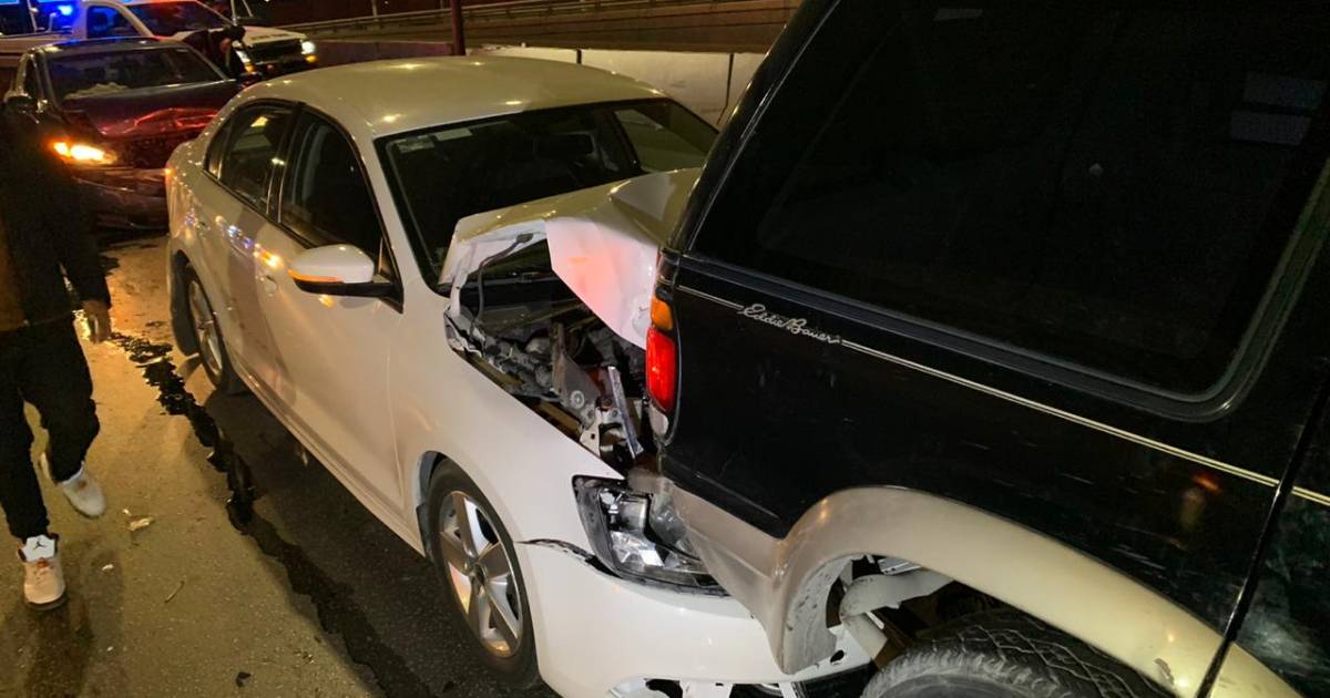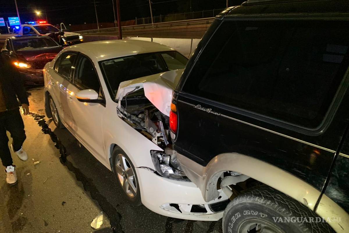 Por la falta de precaución, la conductora de un vehículo Honda Civic se estrelló por alcance de lleno contra un vehículo Jetta, que éste a su vez se fue contra una camioneta Chevrolet Explorer y quedó incrustado.