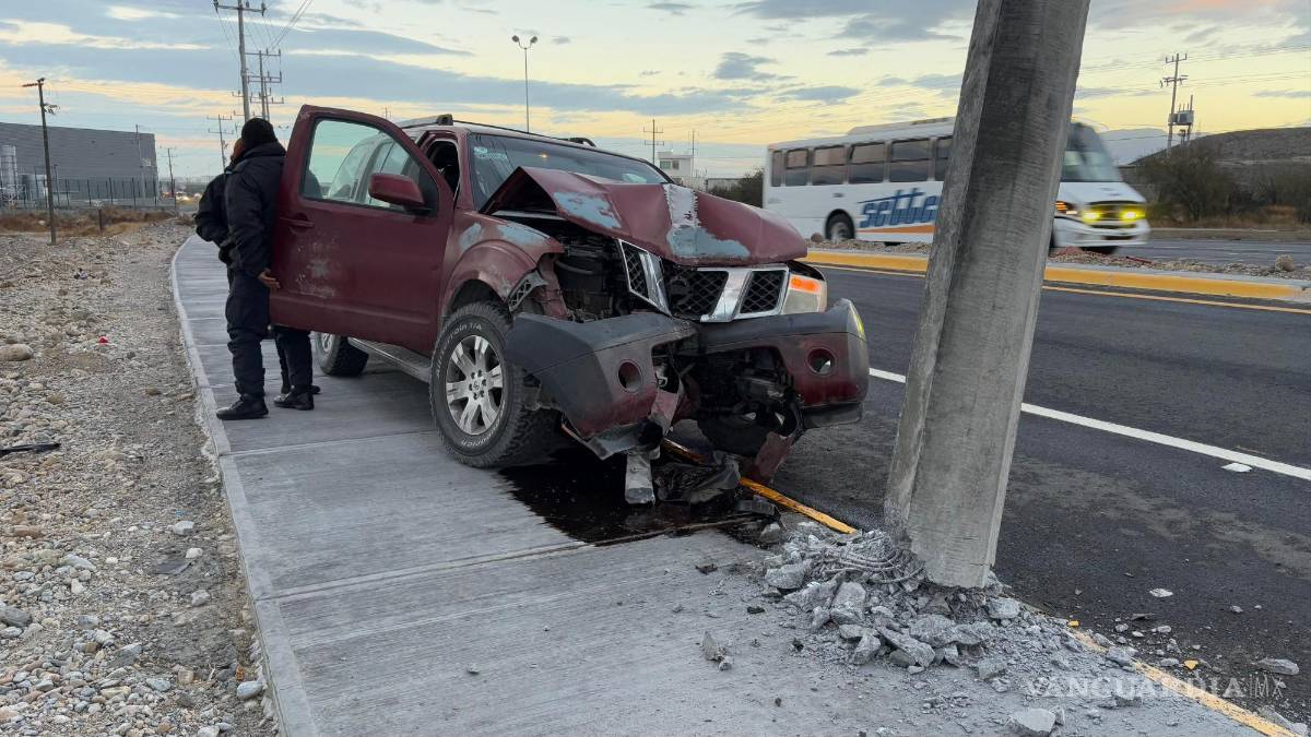 Conductora se estampa contra un poste al norte de Saltillo; culpa a la neblina