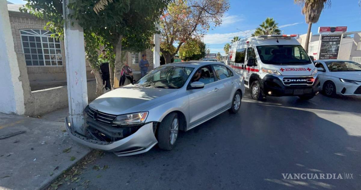 Una mujer sufrió una descompensación de glucosa mientras conducía sobre el bulevar Moctezuma, al norte de Saltillo, lo que provocó que perdiera el control de su automóvil y se estrellara contra un poste la tarde de este sábado.