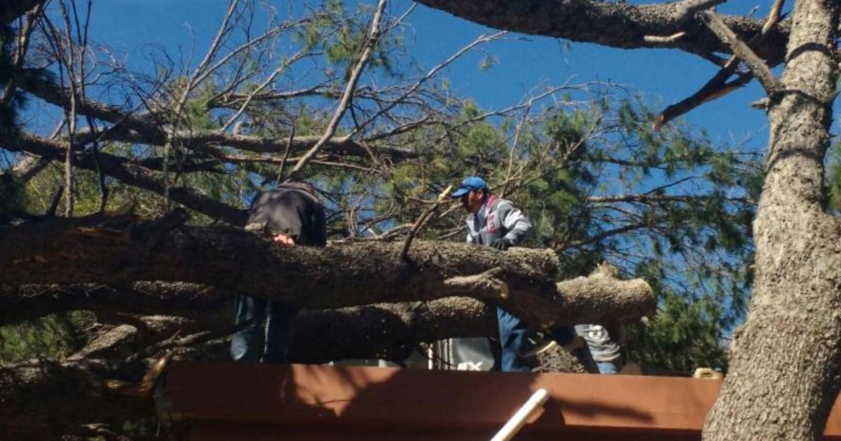 A consecuencia de las fuertes rachas de viento, varios árboles se derrumbaron, por lo que el trabajo de limpieza continuó ayer lunes, por parte de las áreas de Parques y Jardines y Recursos Naturales, de la Dirección de Servicios Primarios y Ecología, respectivamente.
