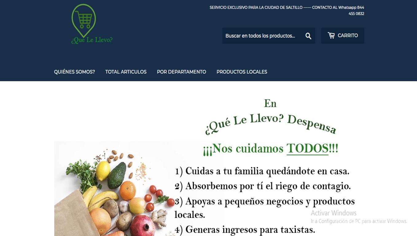 Para los que prefieren no salir de casa y hacer el súper en línea, aquí les presentamos una buena opción. Se trata de la plataforma “¿Qué le llevo?”, creada por Manuel Adolfo Cabello Magallanes y que comparte con Mind in Saltillo como uno de los proyectos para apoyar la economía local en época de contingencia.