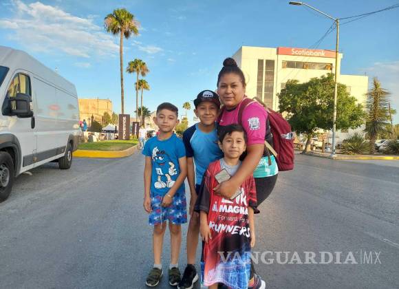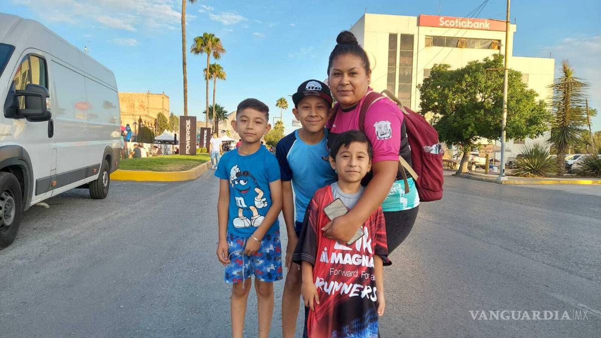 Mary Sánchez y sus tres hijos, Gaeil, Emiliano y Matías, vieron cómo Abel Hinojosa, esposo y padre, partió por sexta ocasión desde la línea de salida del medio maratón coahuilense.
