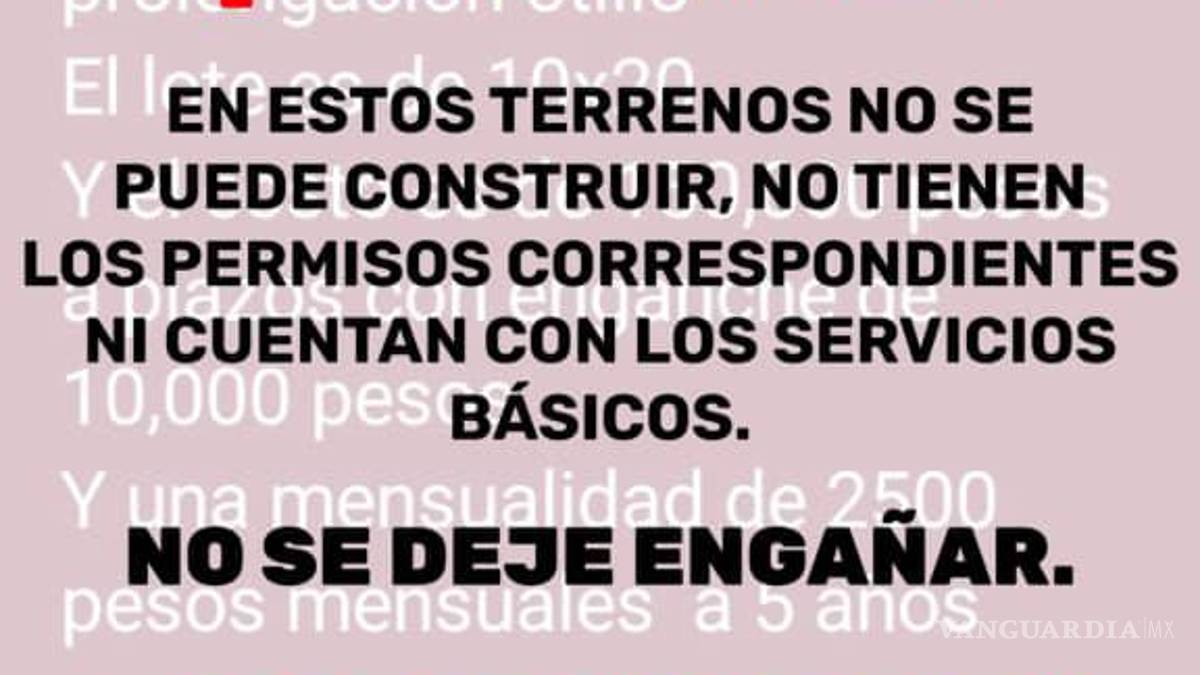 ¡Cuidado! Alerta Ayuntamiento de Saltillo por venta irregular de terrenos en Otilio González