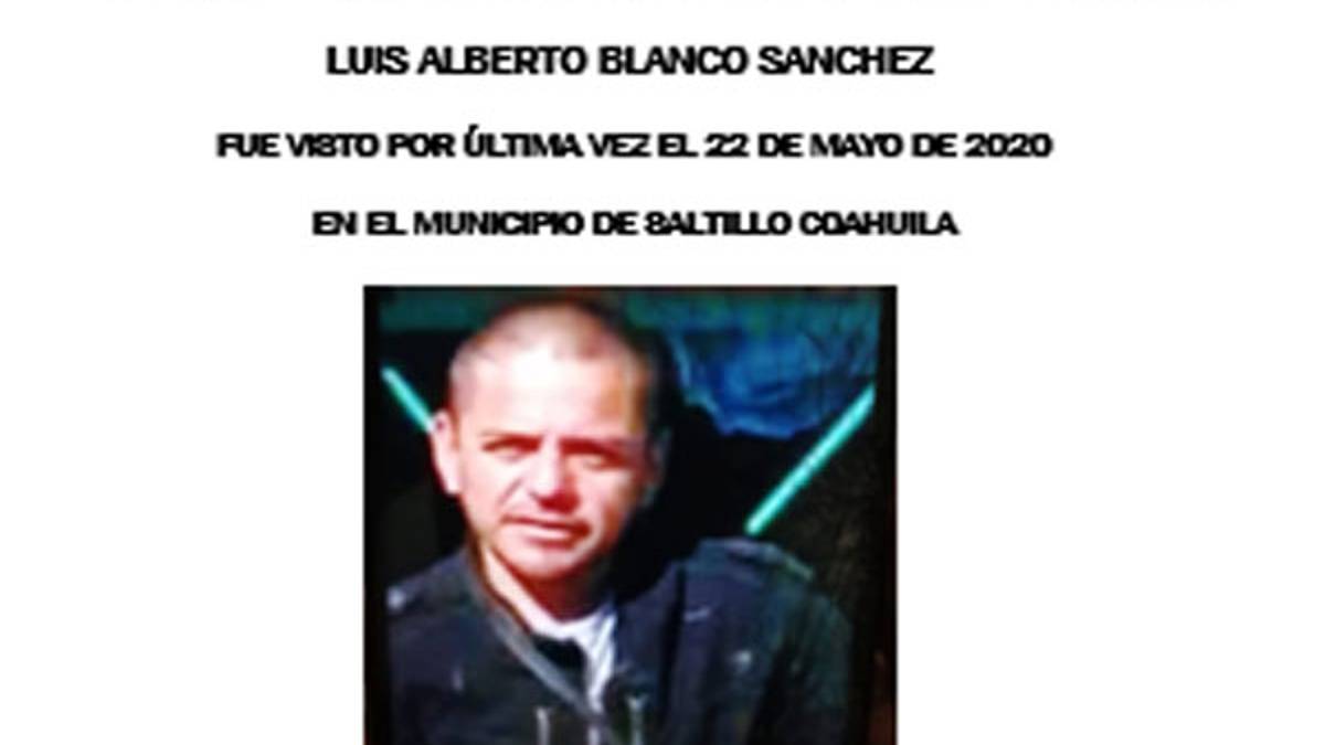 Saltillo.- A 13 días de su desaparición, la familia de Luis Alberto Blanco, denunció que las autoridades de la Fiscalía General del Estado no le han entregado ningún tipo de respuesta sobre el paradero del hombre de 39 años, quien aseguran fue extraído de su domicilio presuntamente por agentes de la Policía el pasado 22 de mayo.