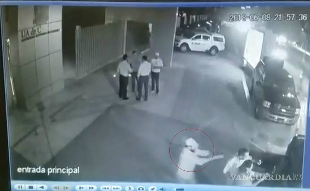 El hecho fue capturado en videocámaras de la Universidad Autónoma de Coahuila, donde se aprecia a un hombre que rondaba la salida del ex alcalde, para después disparar sobre su cabeza y privándolo de la vida de forma inmediata.