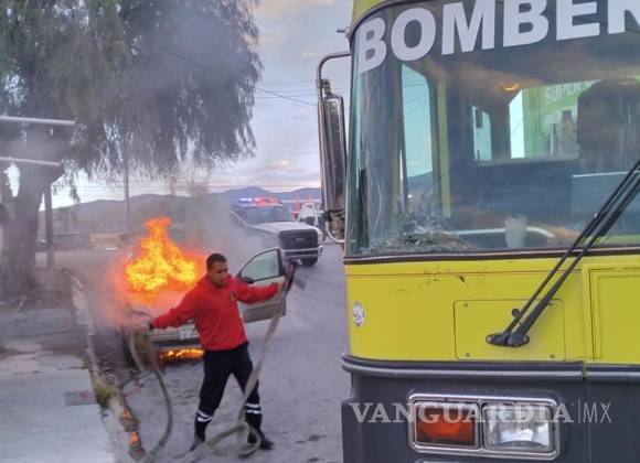 Un hombre vivió un inesperado y angustiante incidente cuando, al regresar de dejar a su hermano en la escuela, descubrió que su automóvil estaba incendiándose. El hecho ocurrió alrededor de las 7:30 horas, cuando el conductor estacionó su vehículo, un Ford Focus, en la calle De la Fuente, justo en el cruce con la carretera 57, en Arteaga.