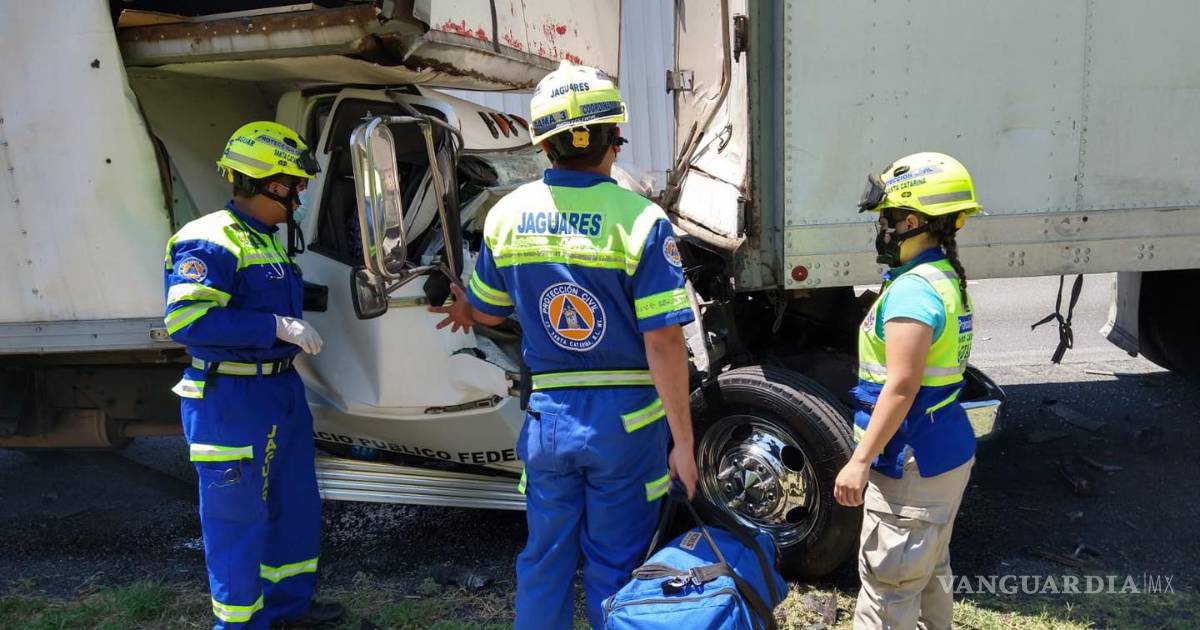 Los primeros en llegar fueron elementos de la Guardia Nacional quienes al darse cuenta que había dos personas al interior de la cabina del coche siniestrado llamaron de inmediato a los cuerpos de rescate, solicitando que llevaran herramienta hidráulica.