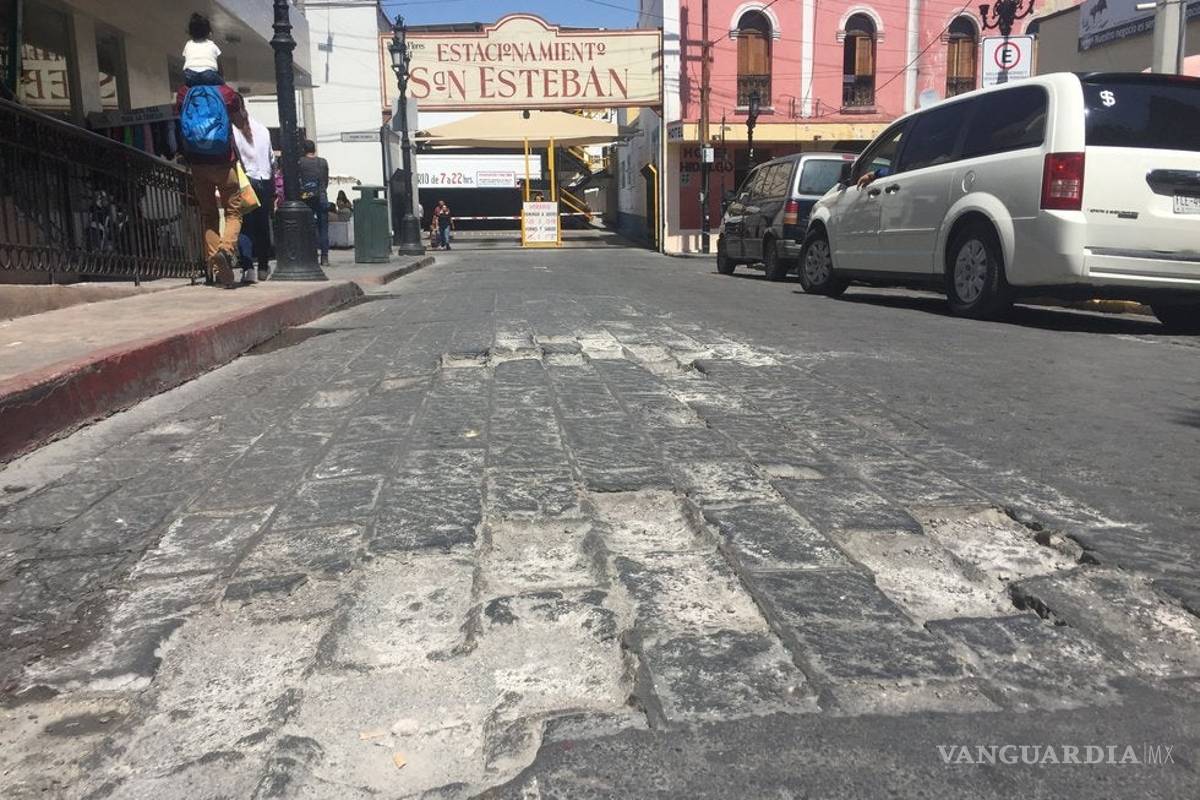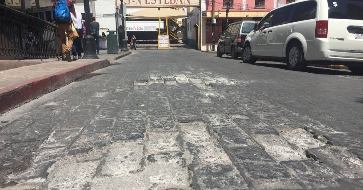 En un recorrido por la zona, Vanguardia MX constató algunos vehículos sobre el adoquín de las banquetas más amplias en la calle de Zaragoza, donde el aceite de los vehículos se derrama provocando enormes manchas y las llantas agrietan los pisos.