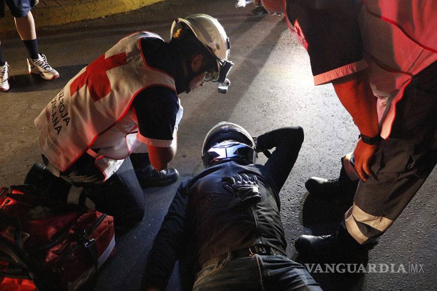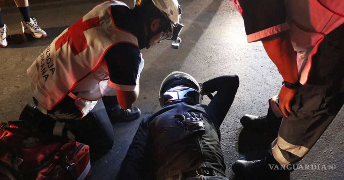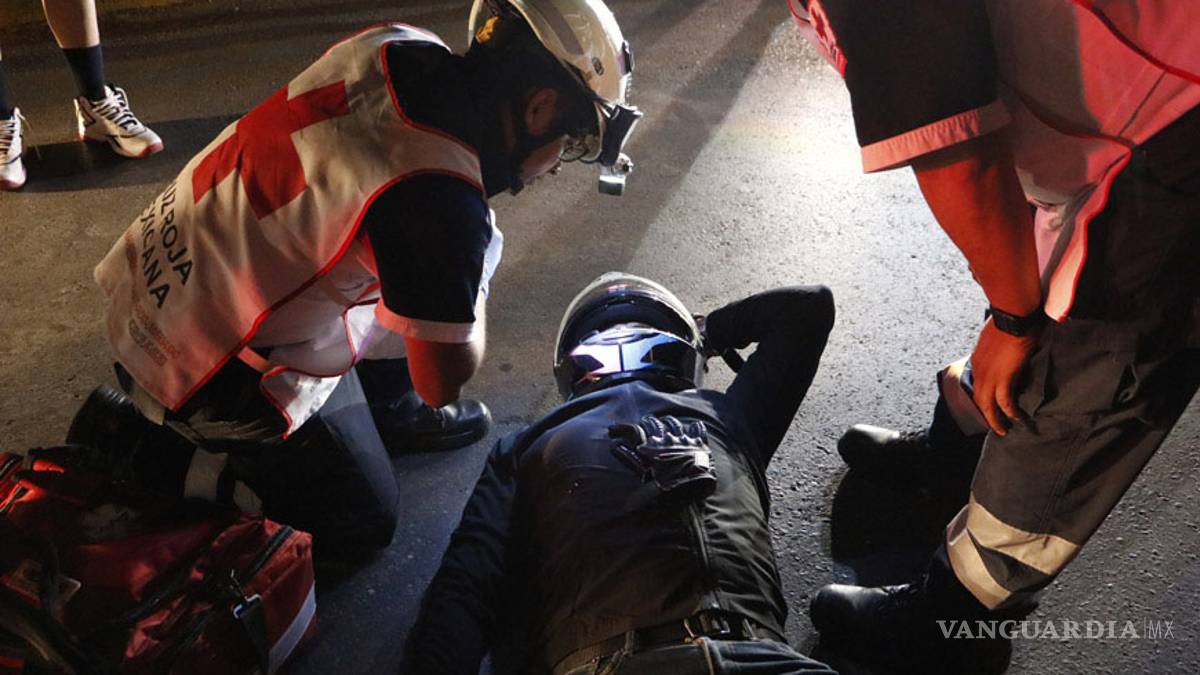 Derrapa motociclista; por golpe se desmaya