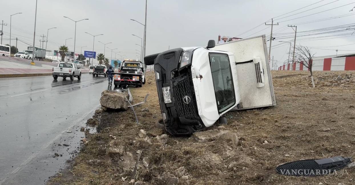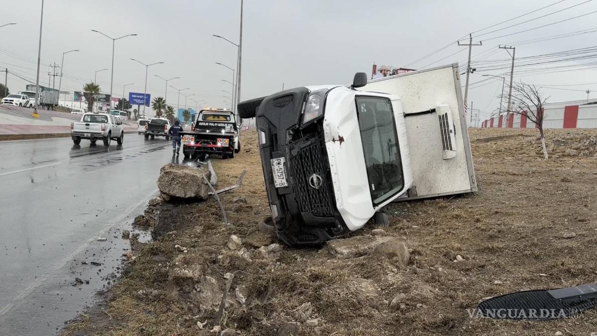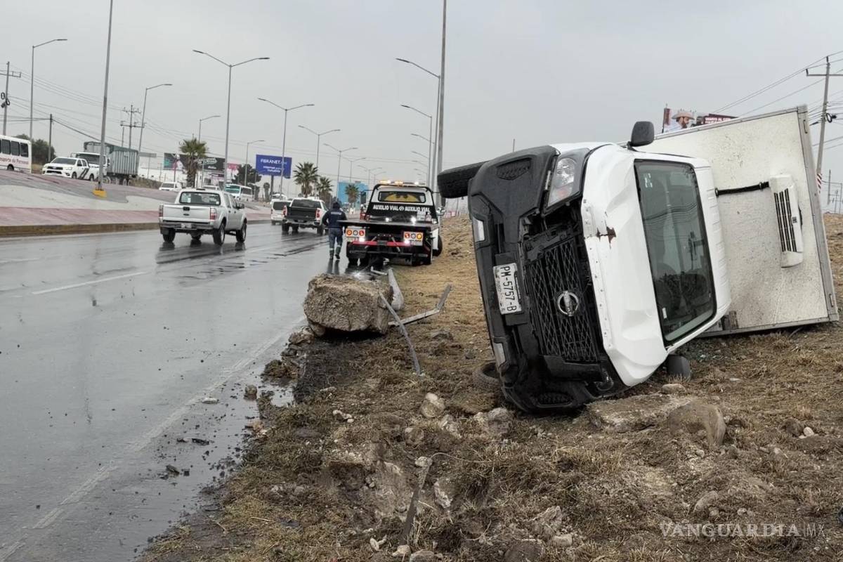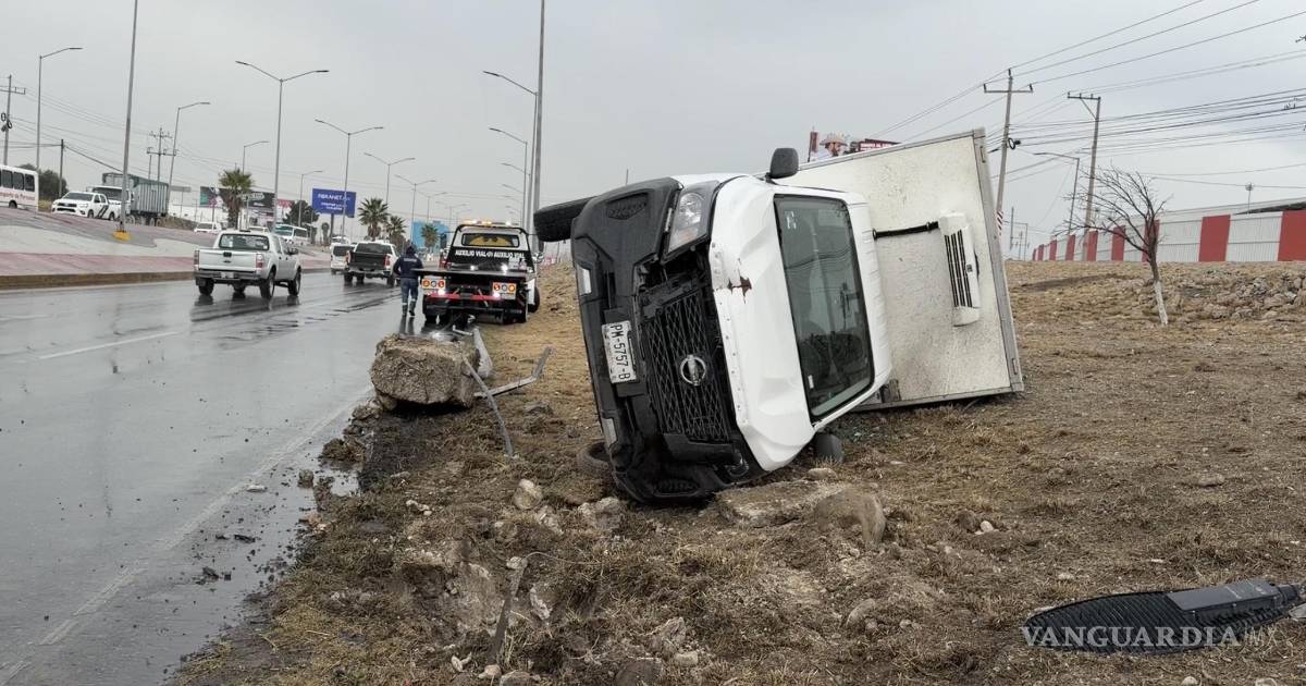 Derrapan, derriban luminaria y vuelcan en el bulevar Miguel Ramos Arizpe rumbo a Saltillo