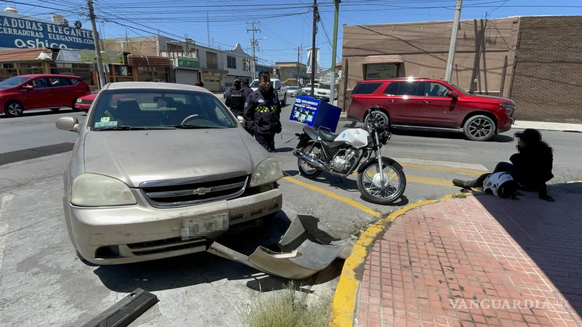 Derriba a motociclista tras cambiar de carril en el centro de Saltillo; resulta herido
