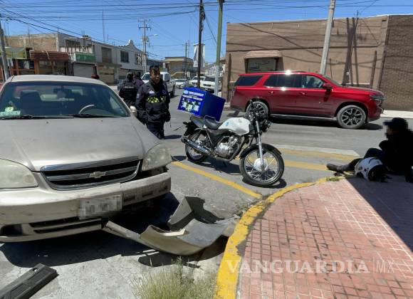 Un motociclista resultó con una lesión leve en el tobillo izquierdo tras ser derribado por un automóvil en el cruce de las calles Presidente Cárdenas y Miguel Hidalgo, en pleno centro de Saltillo. El incidente ocurrió cuando una mujer al volante de un Chevrolet Optra, al no hacer alto en el cruce, terminó por colisionar con el motociclista debido a una distracción.