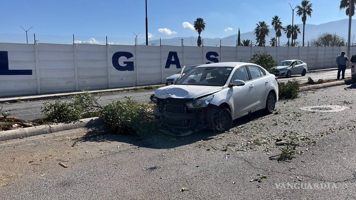 Derriba árboles y cruza el camellón tras invasión de carril al oriente de Saltillo