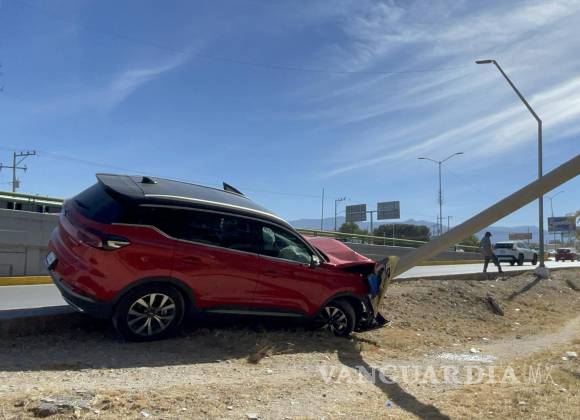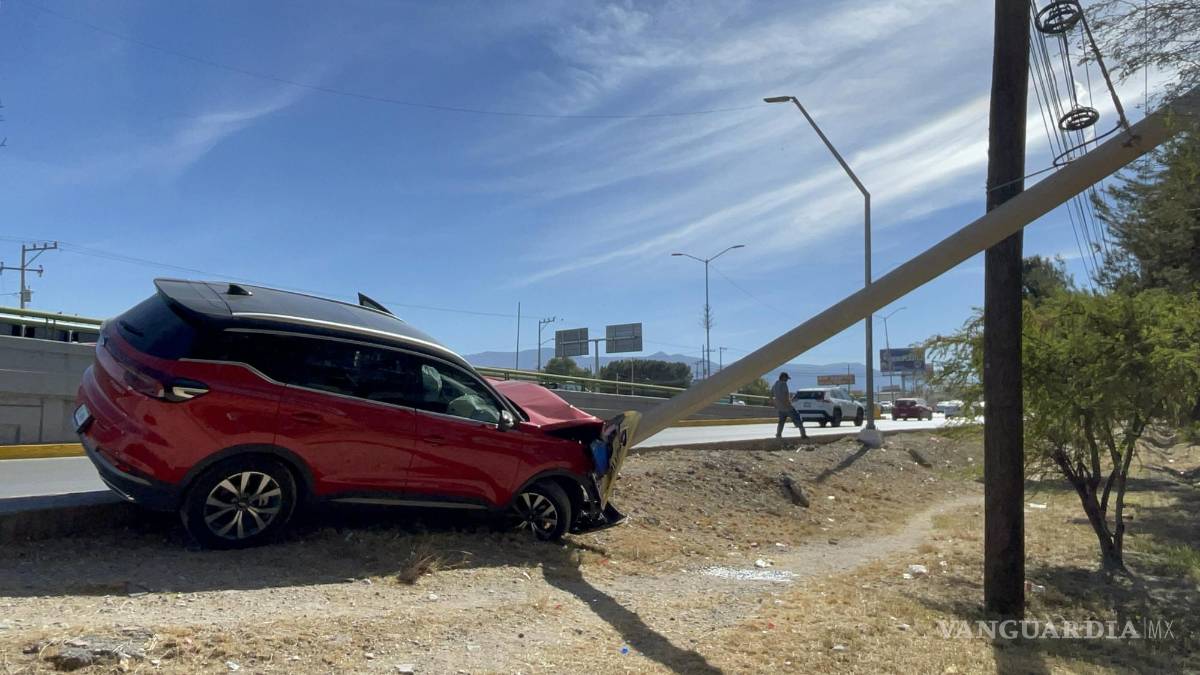 Un hombre salió del camino y terminó estrellándose y derribando un poste de concreto en la lateral del bulevar Venustiano Carranza, casi en el cruce con Jesús de Valle, en la colonia Nueva España, en Saltillo.
