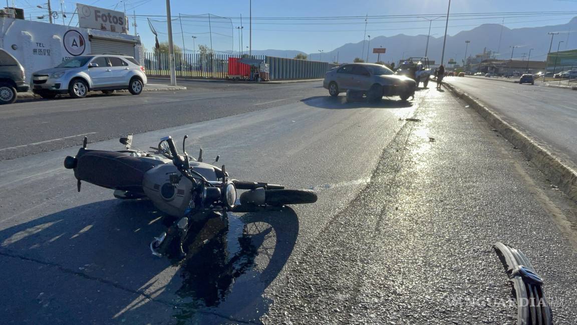 Derriba y lesiona a motociclista al atravesarse en Saltillo; afirma que el sol lo encandiló
