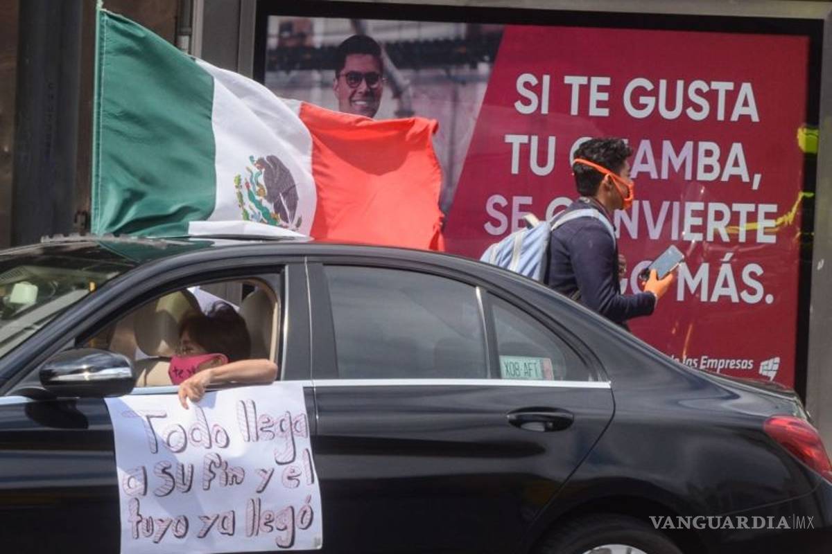 Desde sus coches se manifiestan contra AMLO