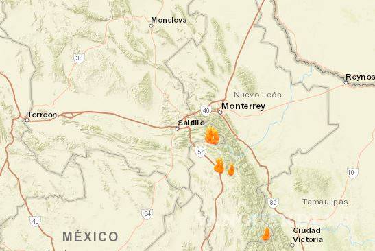 El incendio registrado en el municipio coahuilense aparece en el mapa de monitoreo de focos de calor de la Conagua