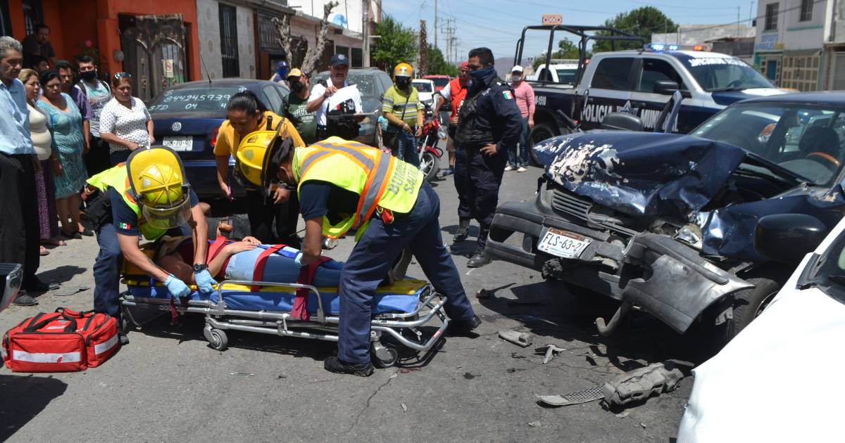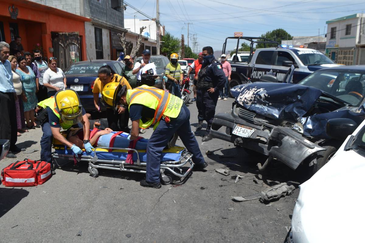 Dos personas lesionadas dejó el choque provocado por un taxista que intentó rebasar, sin éxito, en el bulevar Teresitas con dirección a Antonio Cárdenas. La unidad de alquiler terminó por impactar a tres vehículos y dejar heridas a dos personas que viajaban en una motocicleta.