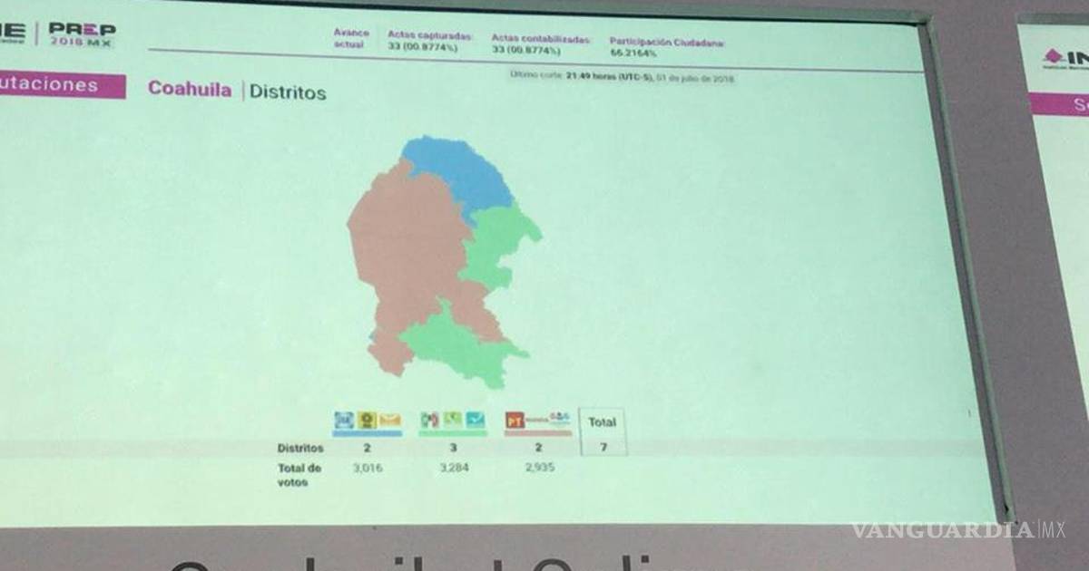 De acuerdo al Instituto Nacional Electoral, la participación ciudadana en Coahuila rondó el 64% y hasta el último reporte se contaba menos del 5% de las actas contabilizadas.