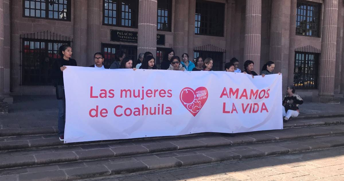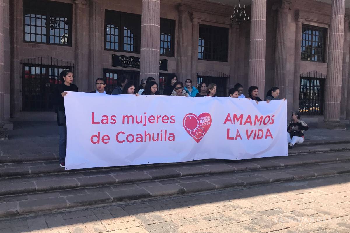 Este día, un grupo de unas 15 mujeres se plantó frente al edificio legislativo, protestando por la posibilidad de la despenalización del aborto, portando una manta que decía “las mujeres de Coahuila amamos la vida”.