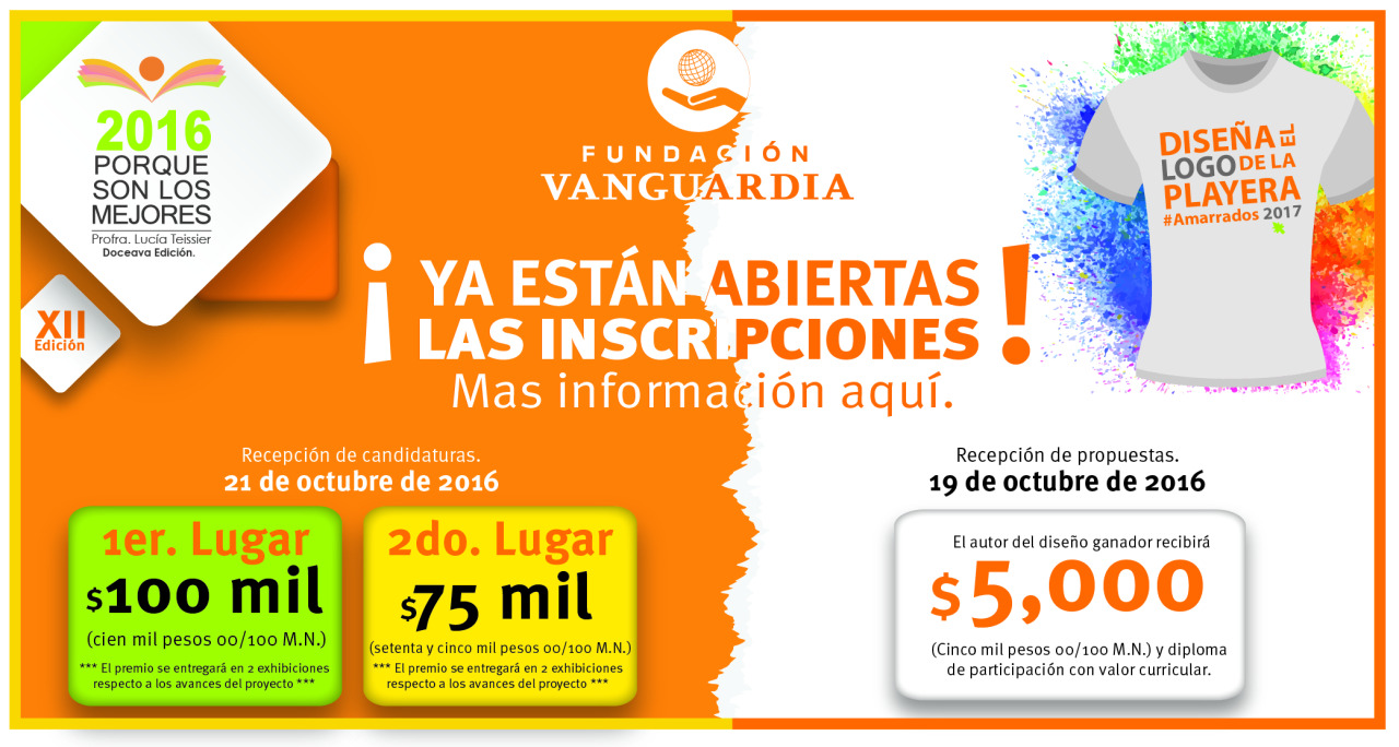 FUNDACIÓN VANGUARDIA convoca a estudiantes que cursen las carreras de diseño gráfico, industrial, artes visuales, plásticas; profesionales independientes o aficionados al diseño en general, a participar en el concurso: Logo de la Playera Amarrados 2017