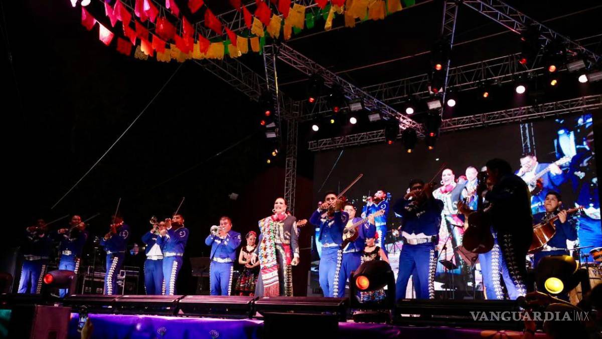 Durante su espectáculo, lució un atuendo adornado con un sarape, símbolo representativo de la cultura coahuilense, y presentó a su hija, Valeria Cuevas, quien participó junto a ella en un ensamble con mariachi, logrando un momento inolvidable en la velada.