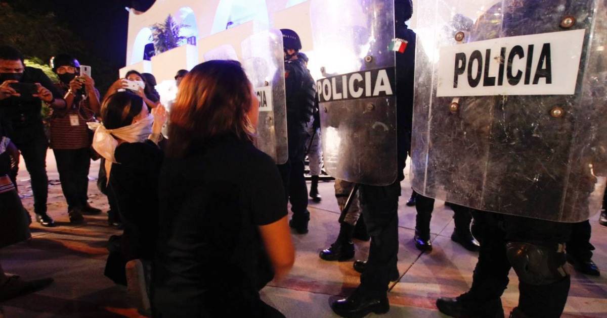 CANCÚN.- Policías municipales realizaron disparos al aire durante las protestas contra el feminicidio de la joven Bianca Alejandrina Lorenzana Alvarado, conocida como Alexis, de 20 años de edad, y dos reporteros resultaron heridos.