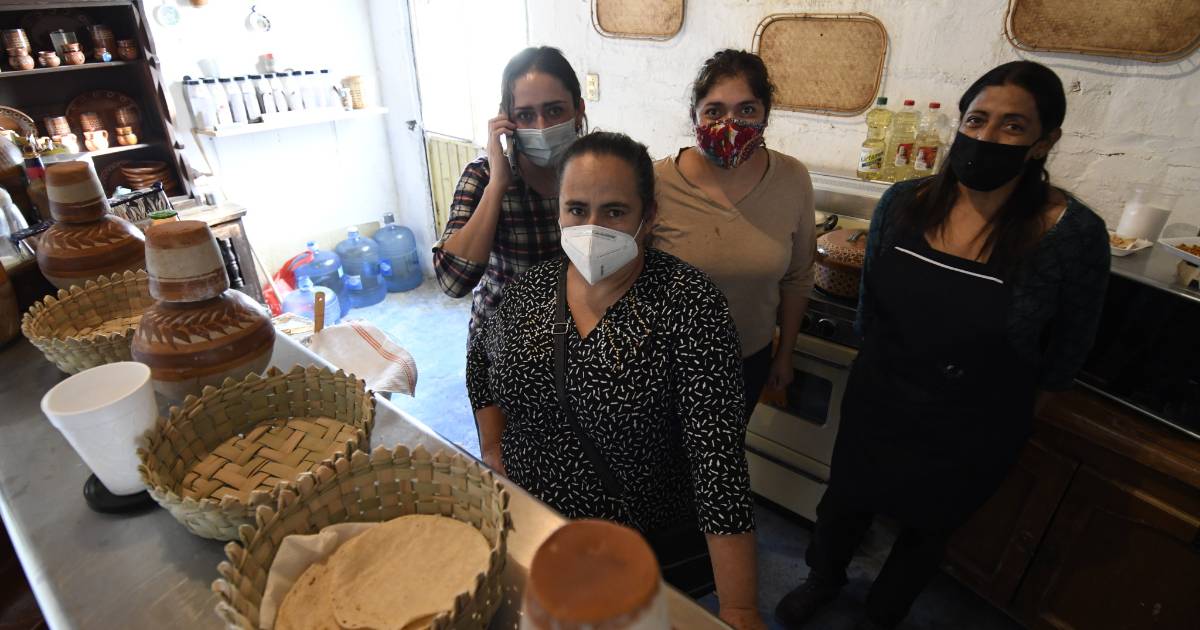 “Esto es lo que nosotros comemos, es comida casera, pero que estamos ofreciendo con mucho amor, es de todo corazón porque yo siento que estoy ayudando a mi pueblo, porque ahorita la estamos pasando muy feo”, relata al borde del llanto.