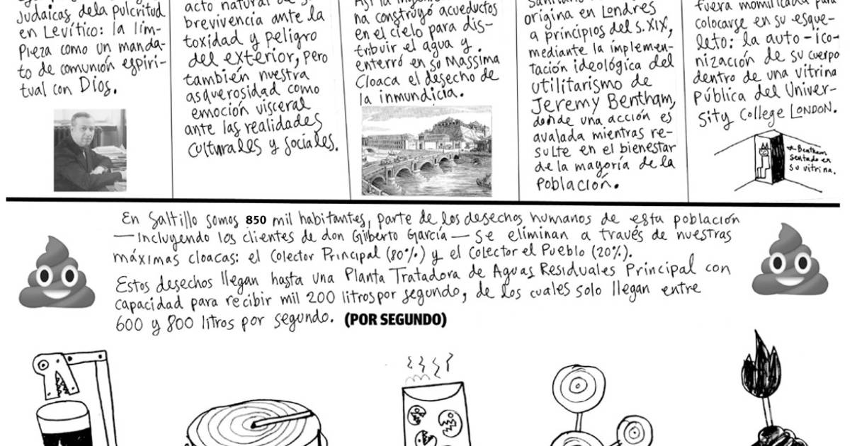¿A dónde se va todo este desecho? + Seguir en Seguir en Google por Federico Jordán Federico Jordán nos platica de una manera divertida cuál es el destino de los desechos de los baños públicos de "Los García" Publicidad Saltillo / 14 marzo 2020 COMPARTIR Sigue a Vanguardia en Google News. Noticias de Vanguardia en WhatsApp. Publicidad TEMAS Salud Localizaciones Saltillo Federico Jordán Federico Jordán (n. 1969) es un artista multidisciplinario. Su trabajo ha aparecido en Vanguardia, The New Yorker, The New York Times, entre otros. Es miembro del Sistema Nacional de Creadores de Arte (2025) en pintura. Tiene posgrado y estudios en educación del arte y antropología teológica. TE PUEDE INTERESAR: Te puede interesar Te puede interesar Publicidad
