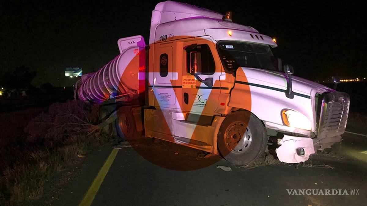 Dormita conductor de pipa y sale del camino en la Saltillo-Monterrey