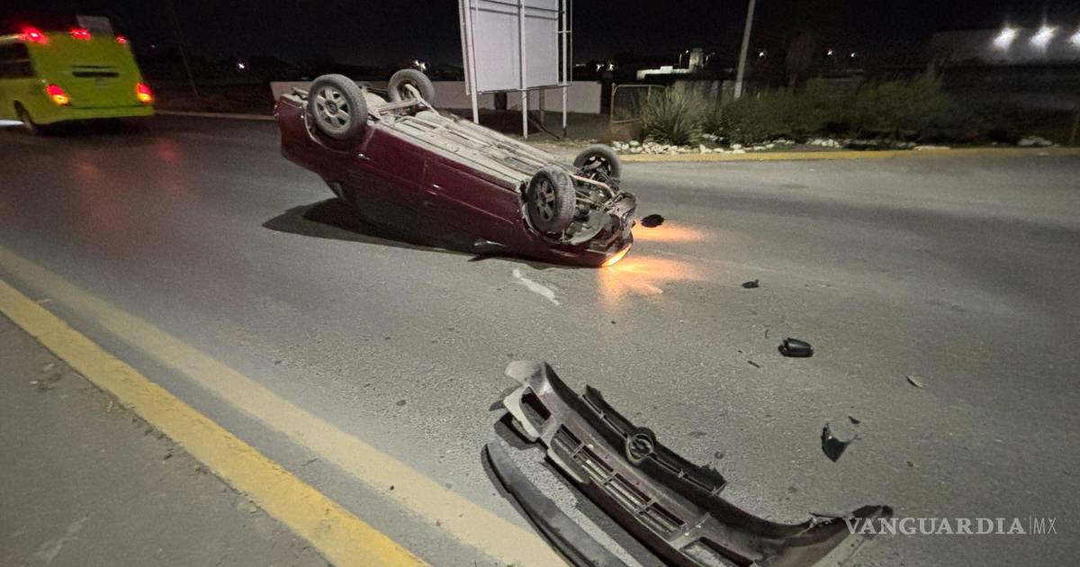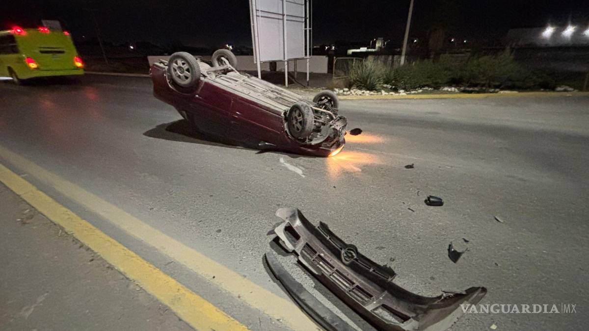 Un joven conductor terminó con su vehículo volcado la madrugada de este domingo, luego de presuntamente quedarse dormido mientras circulaba sobre el bulevar Doctor Jesús Valdez Sánchez, en Saltillo.
