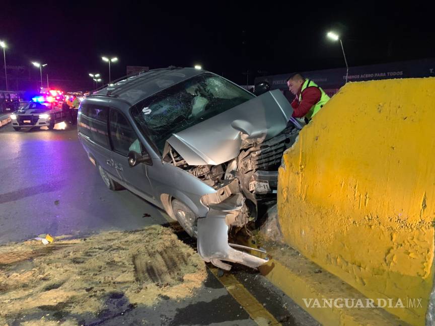 Al parecer por una dormitada, el conductor de una camioneta Chrysler Voyager modelo 2006, se estrelló de lleno contra la protección de concreto del Puente Los Pinos, sobre la carretera Monterrey-Saltillo en Ramos Arizpe.