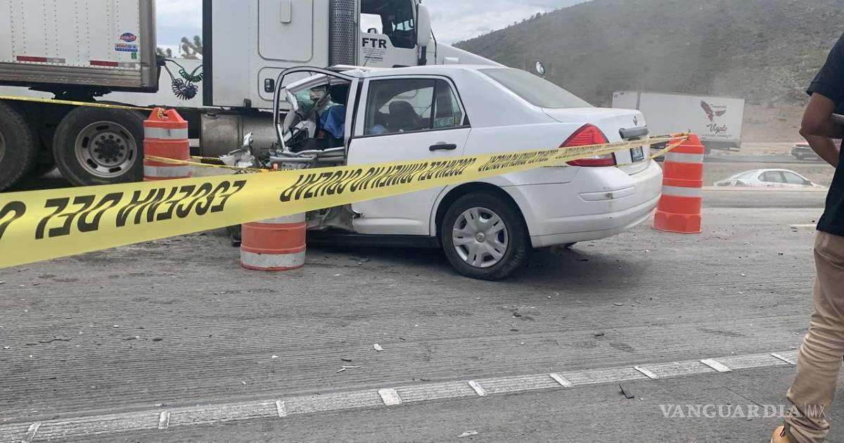 El vehículo con placas NFC-10-16 del Estado de México, se dirigía hacia Matehuala cuando invadió el carril contrario y se fue de frente contra el tráiler.