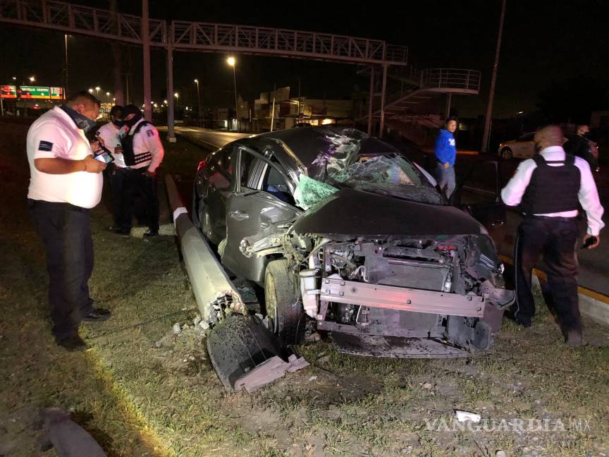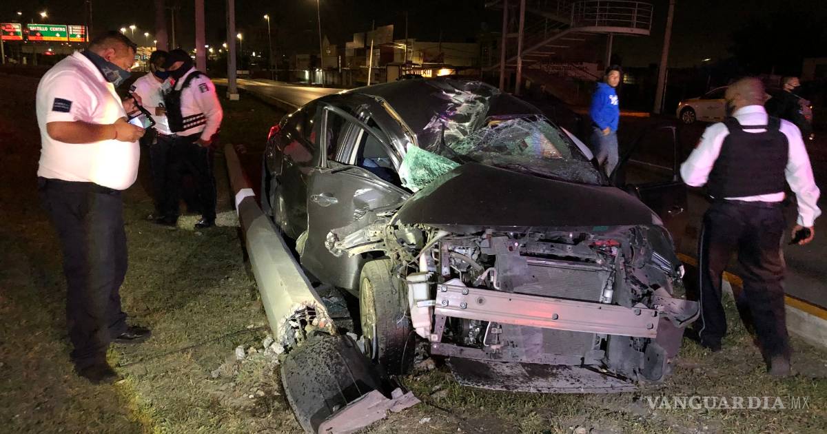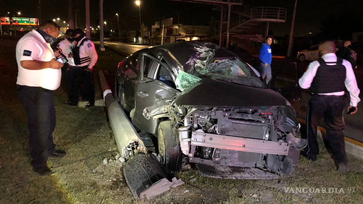 Ebria pierde el control de su auto; se estrella en poste de colonia en Saltillo