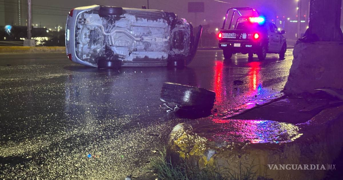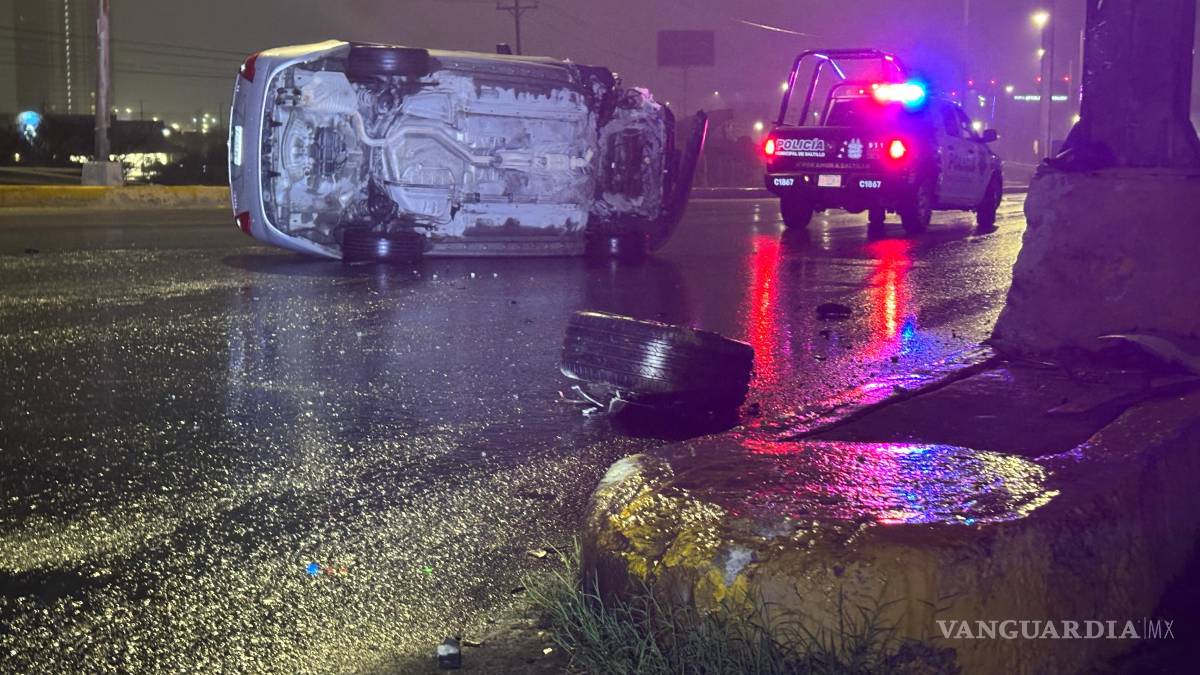 El conductor de un vehículo de la marca Ford terminó volcado sobre su costado izquierdo después de impactarse contra la base de un señalamiento bandera, presuntamente tras conducir bajo los efectos del alcohol, a la altura de la colonia Saltillo 400.