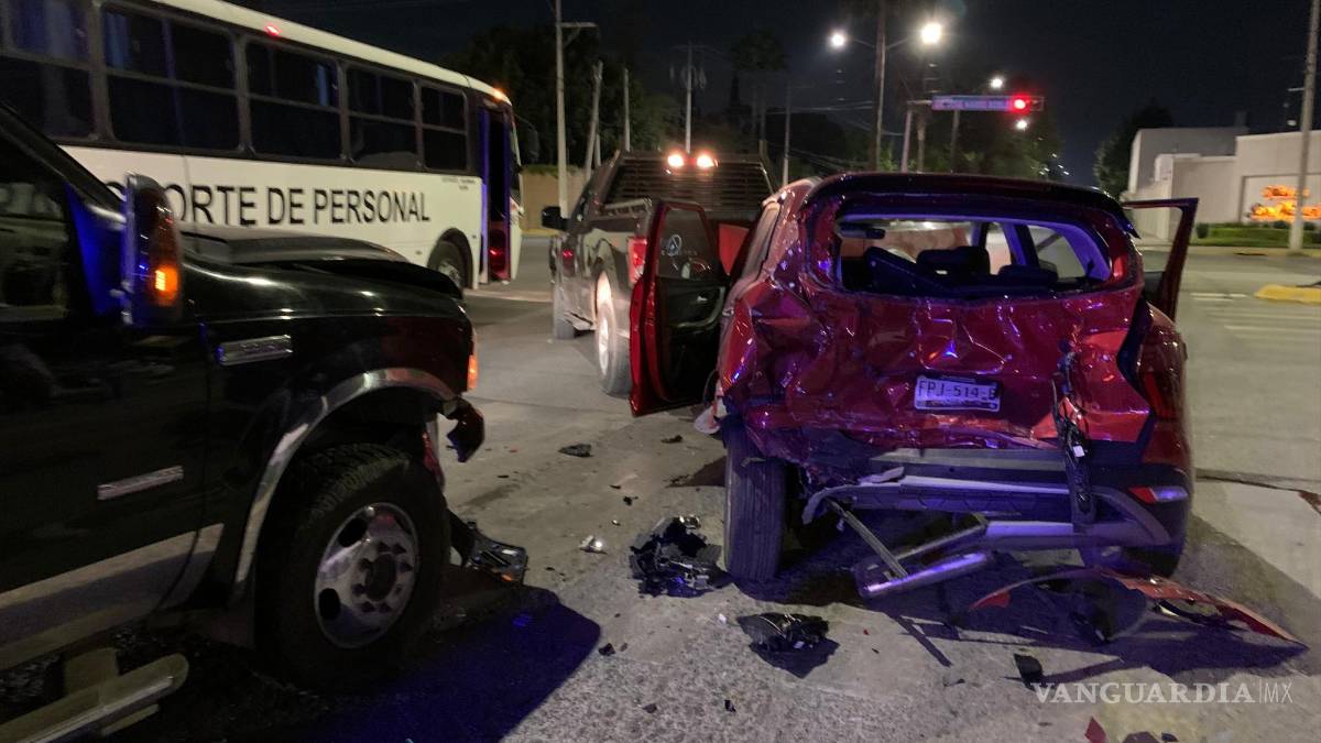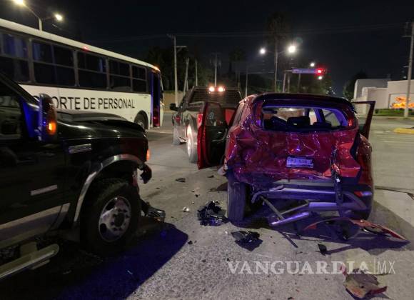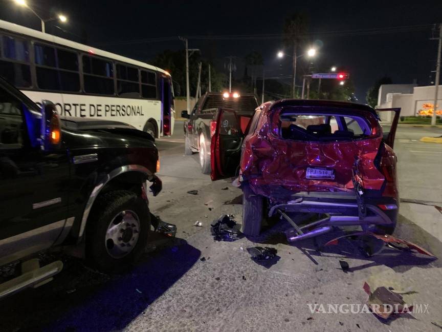 El conductor de una camioneta Ford provocó un aparatoso percance vehicular, pues, al conducir en presunto estado de ebriedad, chocó por alcance contra un vehículo Hyundai, que salió proyectado contra otra camioneta Ford cuando ambos se encontraban detenidos en un semáforo, al norte de Saltillo.