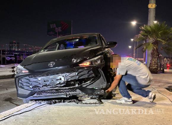Ebrio conductor se impacta contra muro y termina sobre el camellón, en Saltillo