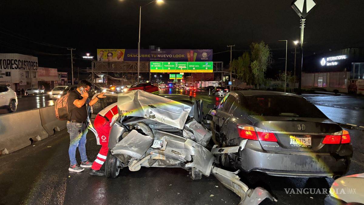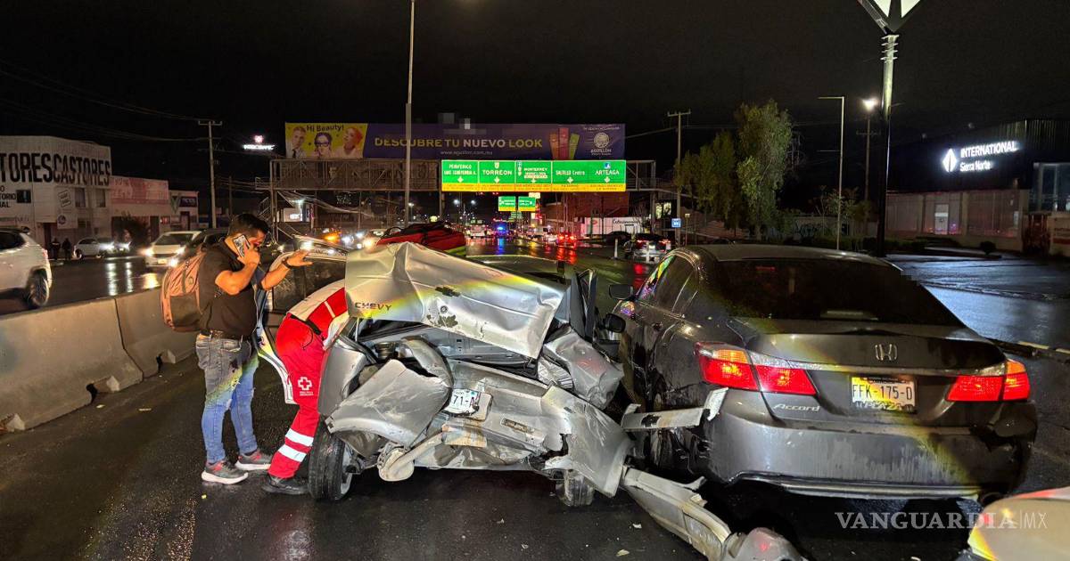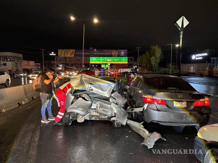 Ebrio ocasiona carambola en el periférico LEA de Saltillo; deja 5 lesionados