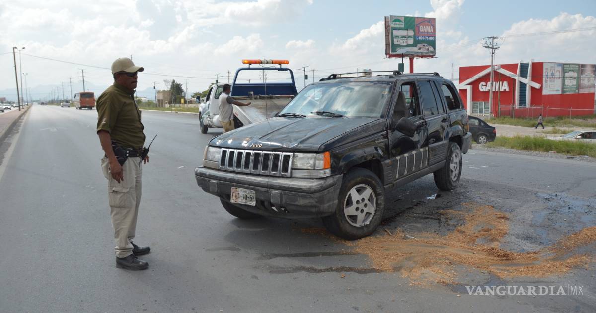En el compacto viajaba José Luis Gutiérrez, su esposa Brenda y dos menores de edad, uno de ellos de dos meses de nacido, siendo los infantes quienes resintieron el tirón y tuvieron que ser atendidos por paramédicos de Bomberos de Arteaga.