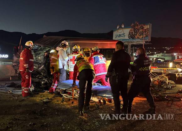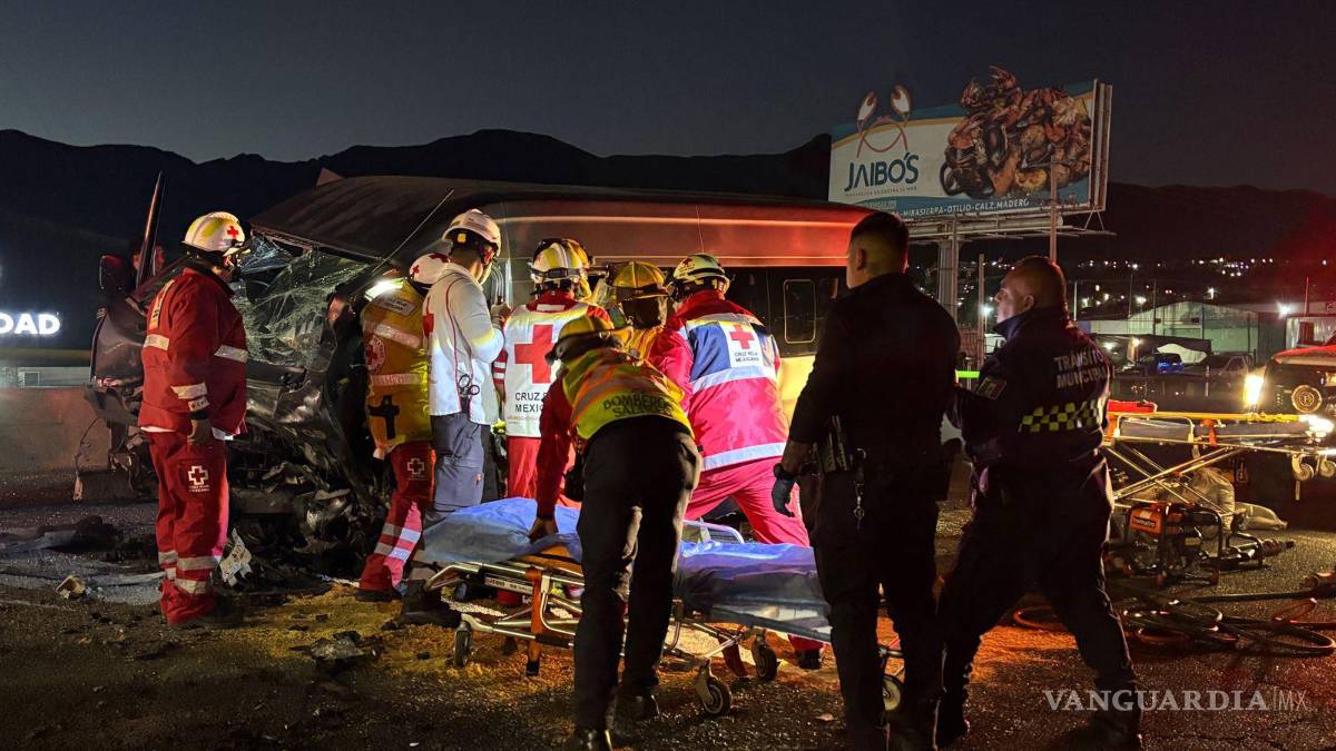 Ebrio se brinca el camellón y choca de frente con transporte de personal en Saltillo; deja seis heridos