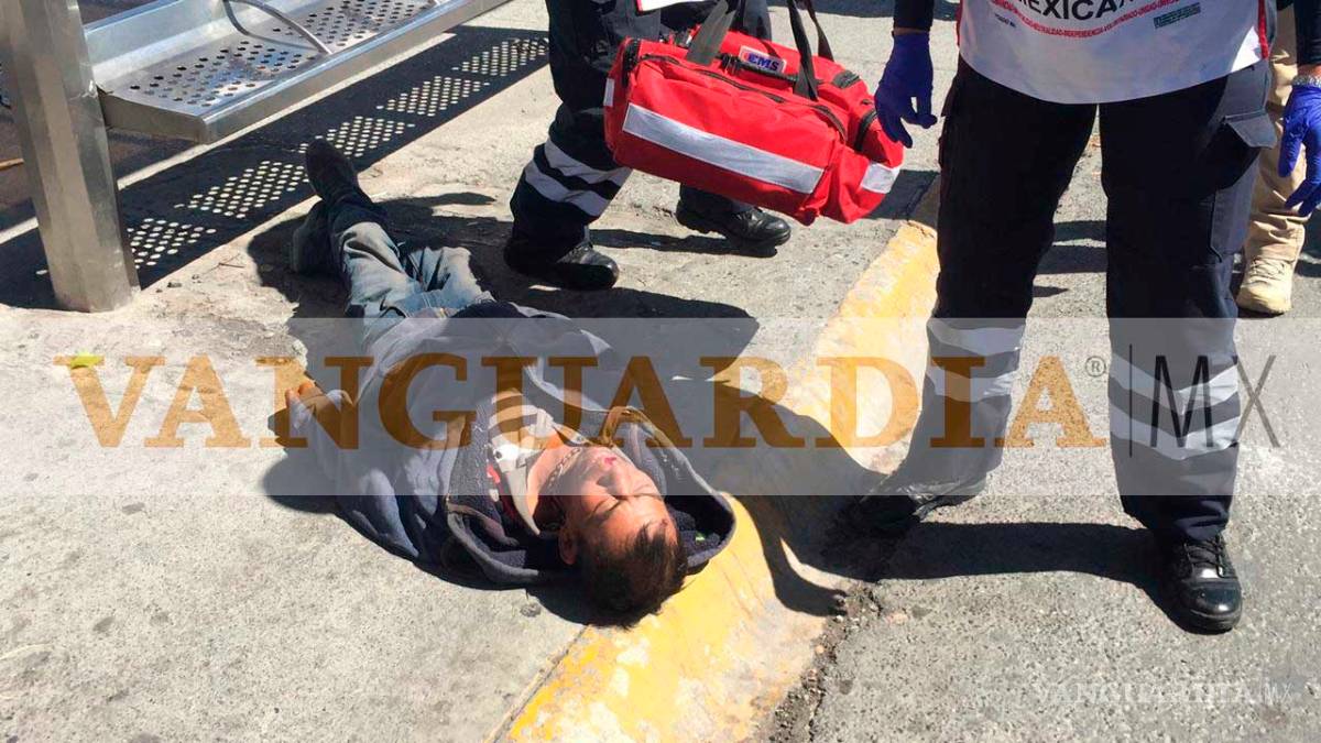 Personal de la Cruz Roja atendió y traslado a las instalaciones del Hospital General a una persona reportada como inconsciente tirada frente a un parabús en prolongación Francisco de Urdiñola.