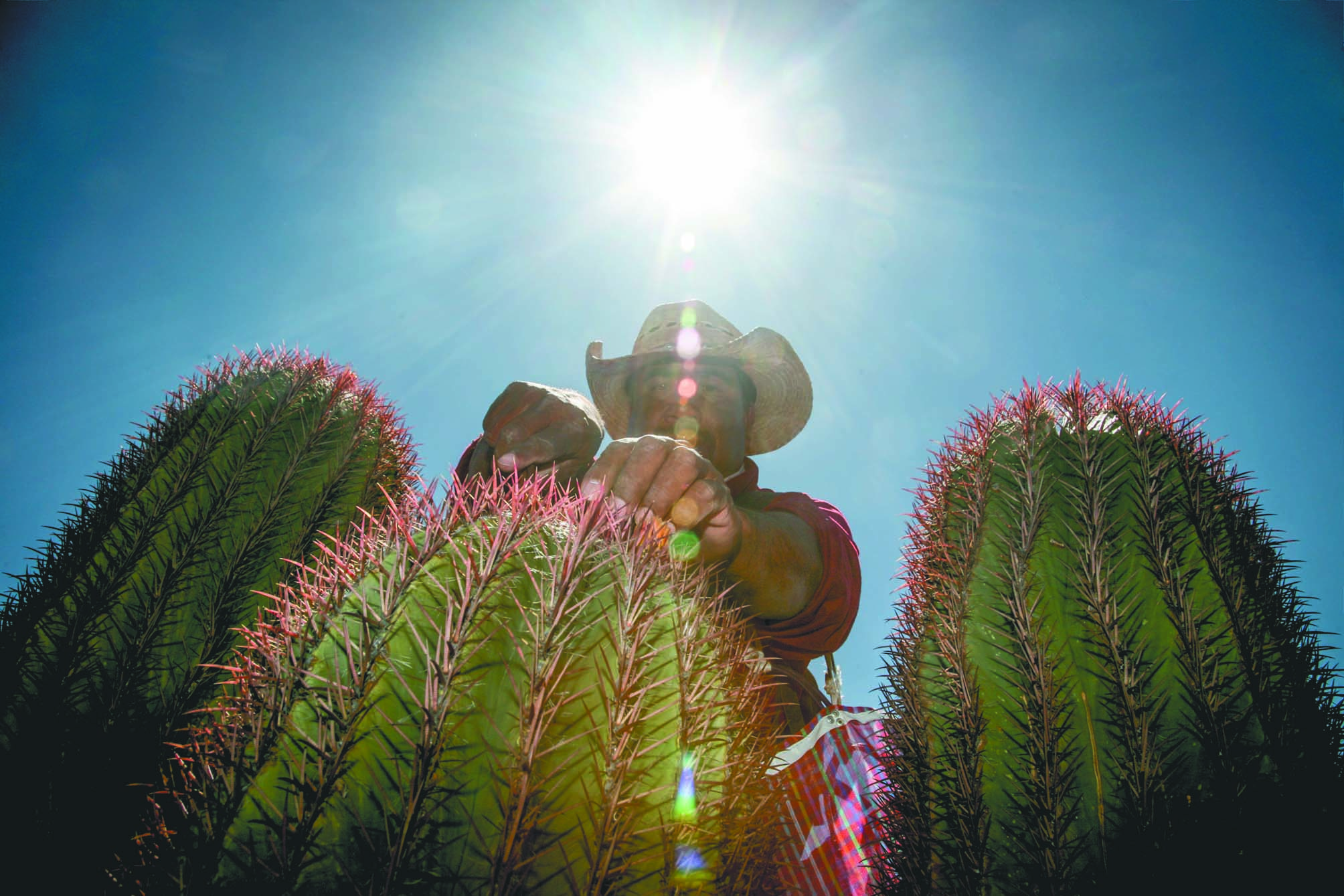 El cabuche es el botón floral del barril de fuego, biznaga de lima o biznaga cabuchera (ferrocactus pilosus), es uno de los mil 500 cáctus registrados en América Latina. Es fácil distinguirlo por el tono rosa de sus espinas que protegen al cabuche y es eso lo que “Tejón” y Julián buscan con la mirada sobre el terreno.