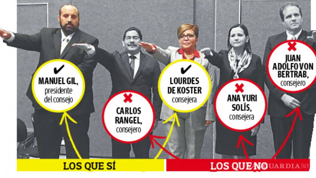 Dentro del apartado Sistema Nacional Anticorrupción del portal tresdetres.mx, en lo que respecta a Coahuila, aparecen las de Manuel Gil, presidente del consejo estatal, y Lourdes de Koster, integrante del mismo.