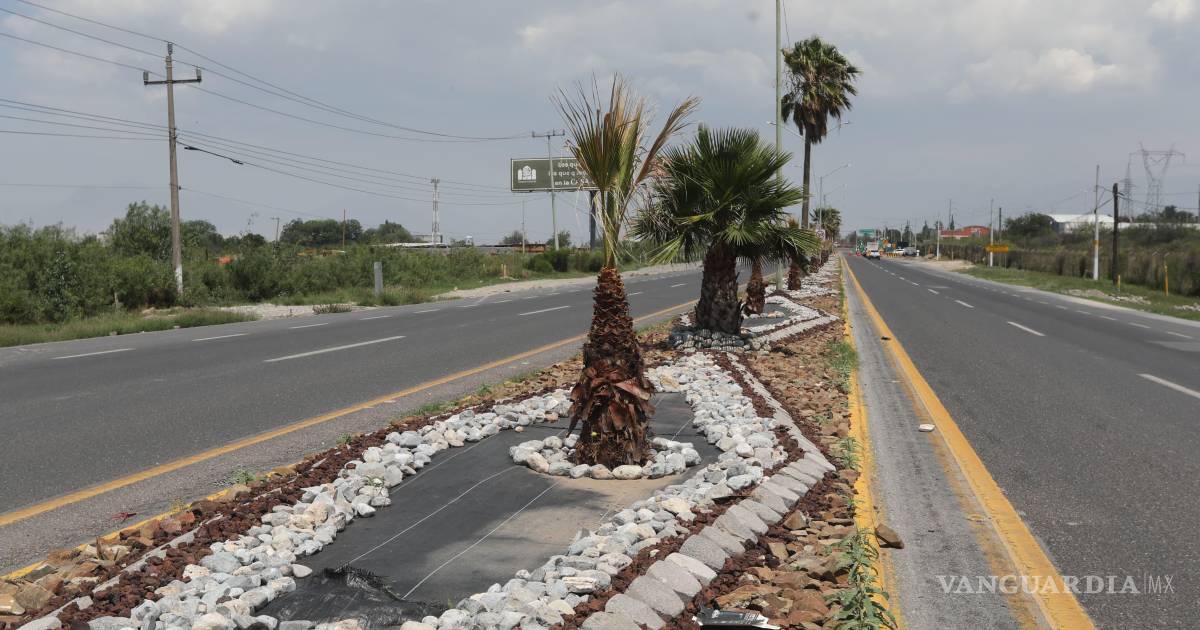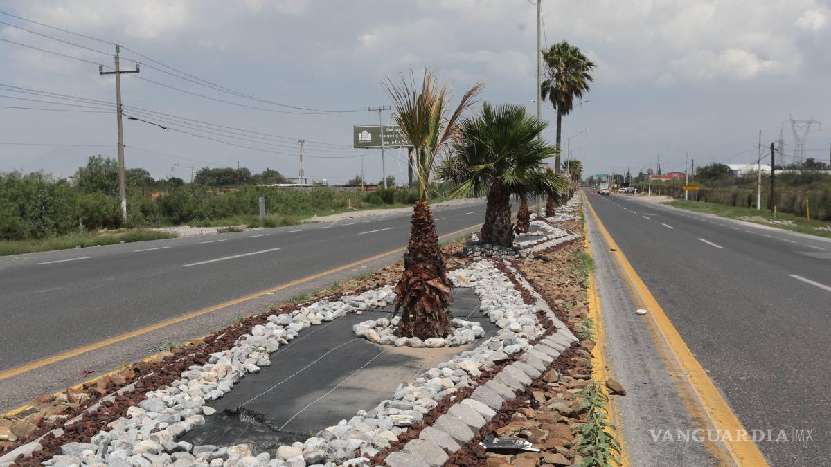 Entre las acciones más destacadas se encuentra el embellecimiento de la entrada poniente de Saltillo, donde brigadas del programa “Aquí andamos” rediseñan el camellón central con piedras de distintas texturas y colores naturales, en la vialidad que conecta a la ciudad con la autopista hacia Torreón.