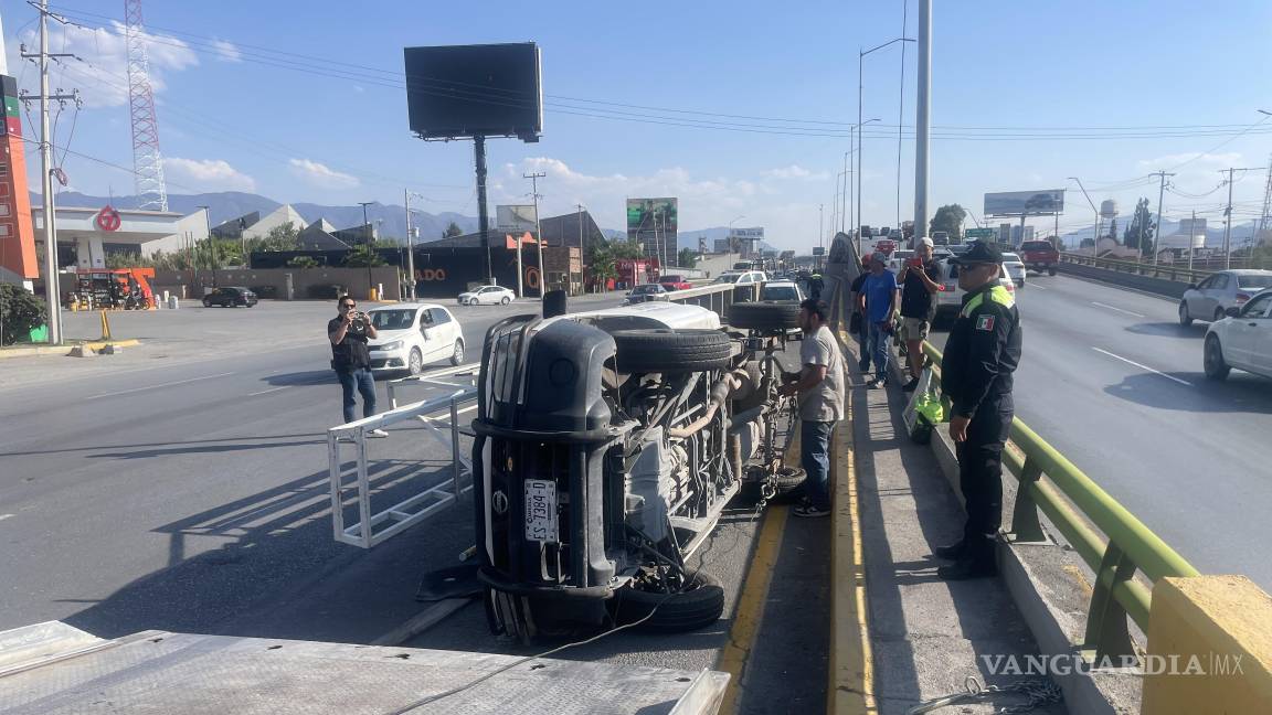 Empleado vuelca camioneta tras recibir ‘cerrón’ en bulevar Venustiano Carranza
