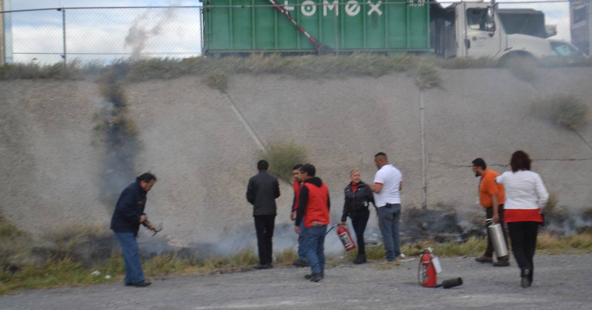 Un fuego se inició en pasto seco localizado en el estacionamiento, por lo que el personal acudió con extintores para apagarlo, pues con el viento las llamas crecían.