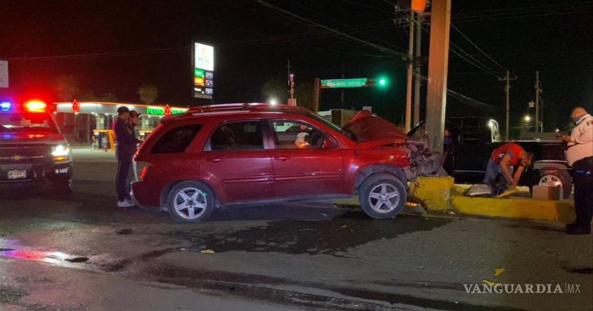 Manejaba a toda velocidad, en sentido de sur a norte por Centenario de Torreón, perdiendo el control del volante al querer girar rumbo al oriente por Valdez Sánchez, estrellándose de lleno contra la base de un semáforo.