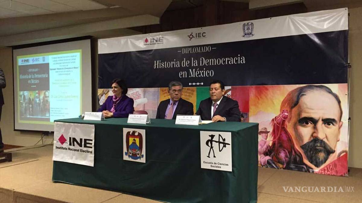 Este viernes dio inicio el diplomado de Historia de la Democracia en México, organizado por el Instituto Nacional Electoral, en colaboración con el Instituto Electoral de Coahuila y la Escuela de Ciencias Social de la Universidad Autónoma de Coahuila.