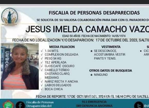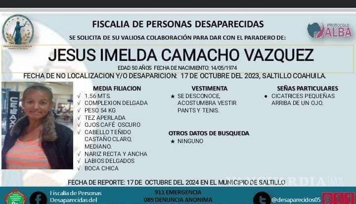 De acuerdo con las investigaciones, el 17 de octubre de 2023, Jesús Imelda Camacho Vázquez, de 50 años, desapareció, pero no fue sino hasta un año después, en la misma fecha, el 17 de octubre de 2024, que se interpuso la denuncia por su no localización.