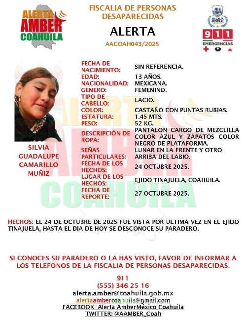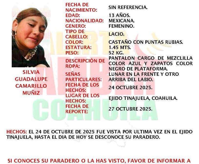 De acuerdo con las primeras investigaciones, el cuerpo corresponde a S.G.C.M., de 13 años, quien había sido reportada como no localizada desde el 28 de octubre. Las autoridades señalaron que la víctima presenta una lesión producida por un arma de fuego, según los reportes preliminares.